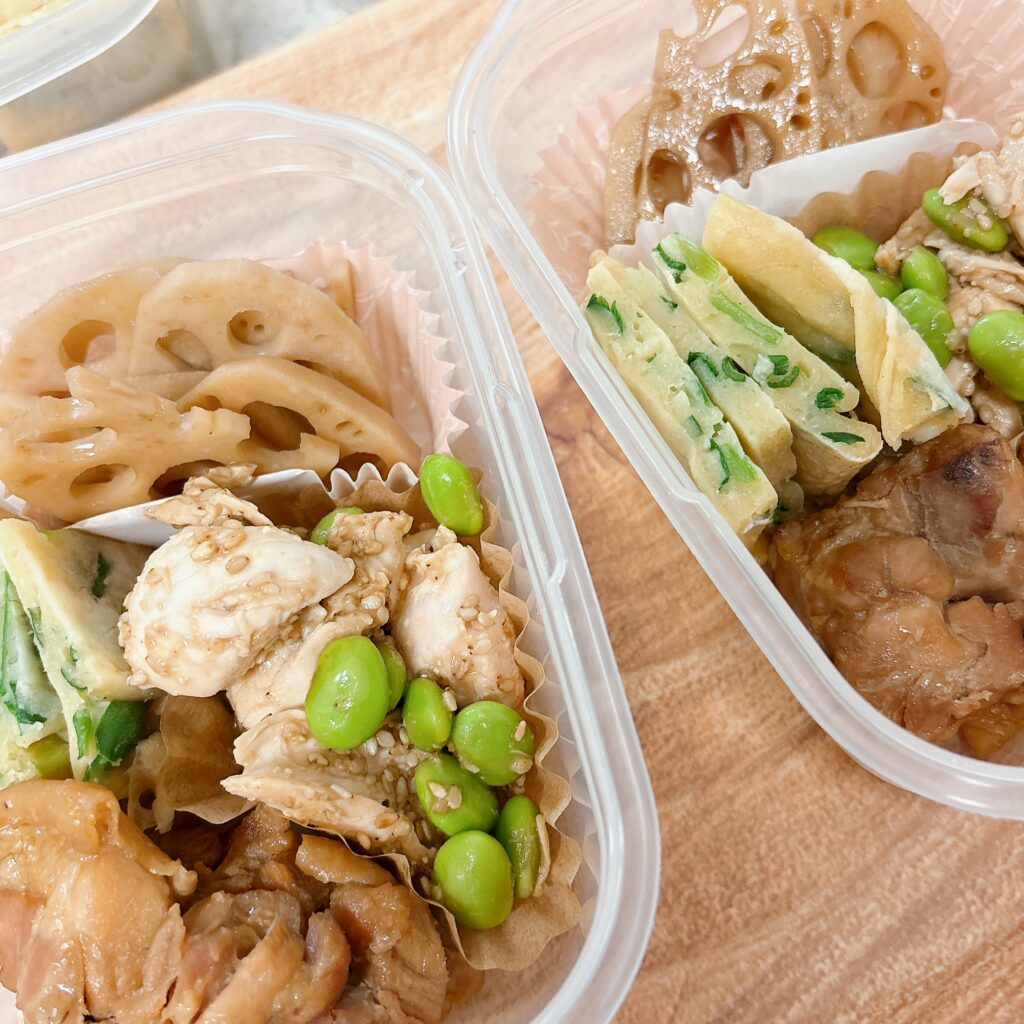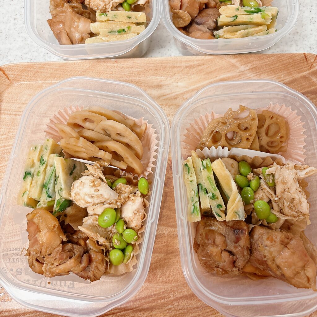 独り暮らしの母への差し入れ用に照り焼きチキンのおかずセットを冷凍しました。